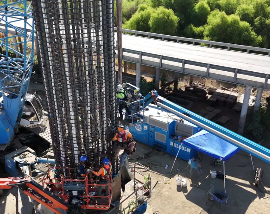 Throughout October, construction crews continue working on the new Hills Ferry Bridge. Currently, carpenters are shaping the soffit (the bottom of the bridge) and girder stem sections, while ironworkers are laying out and tying the reinforcement. Additional surveying crews are collaborating with the Contractor to grade and adjust the falsework system, which will temporarily support the bridge during the upcoming concrete pour for the stem and soffit, expected in late November.
